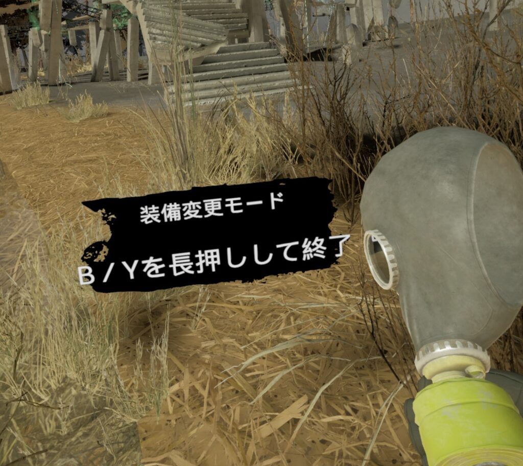 何も持っていない手でB/Yボタンを長押しすると「装備変更モード」に入ります。