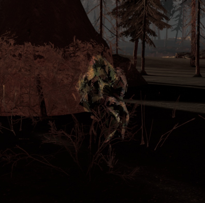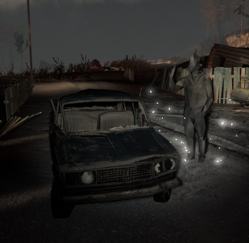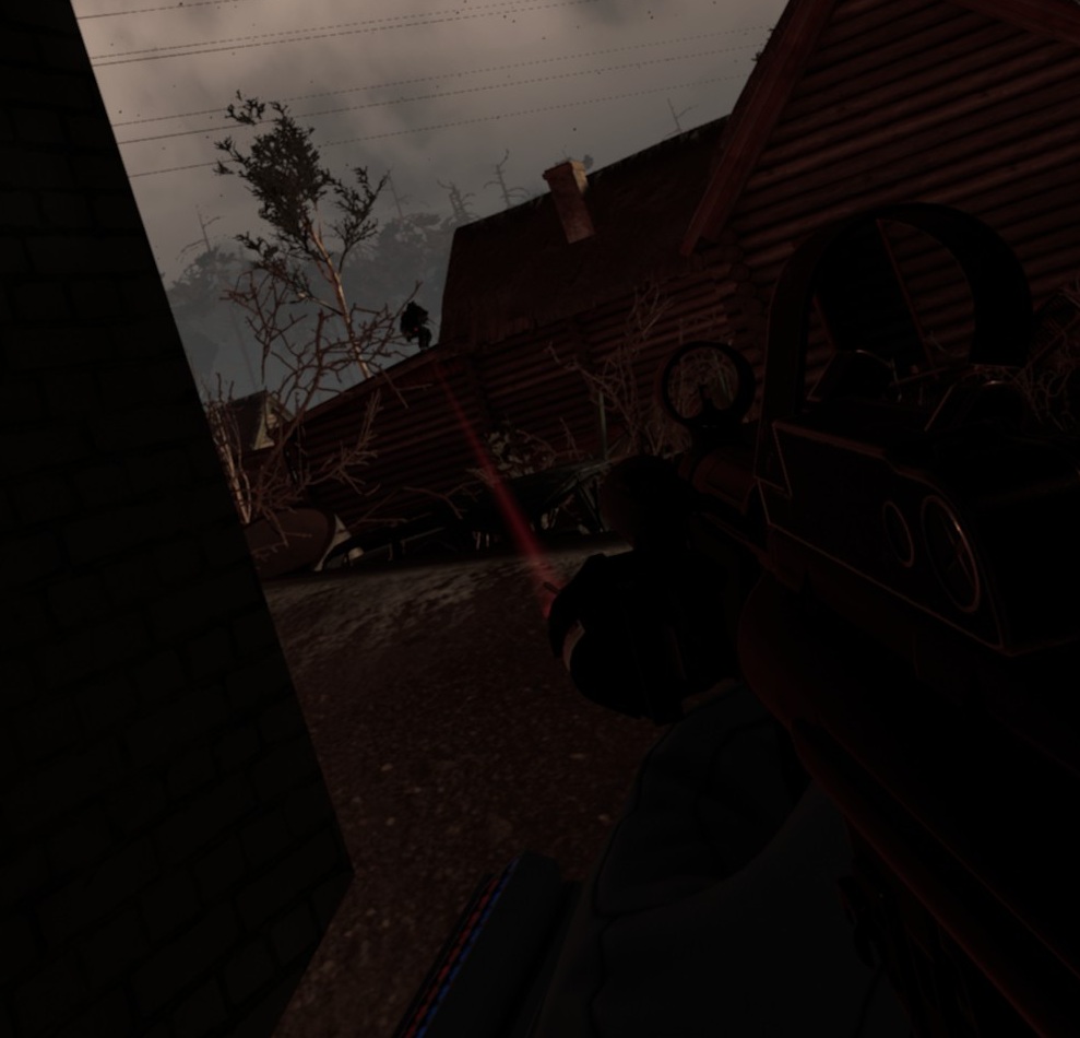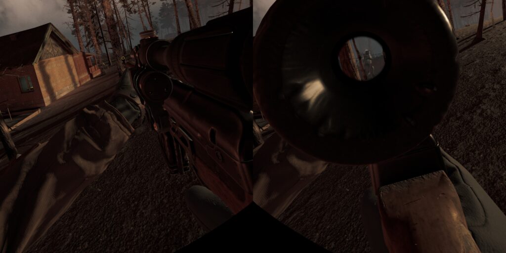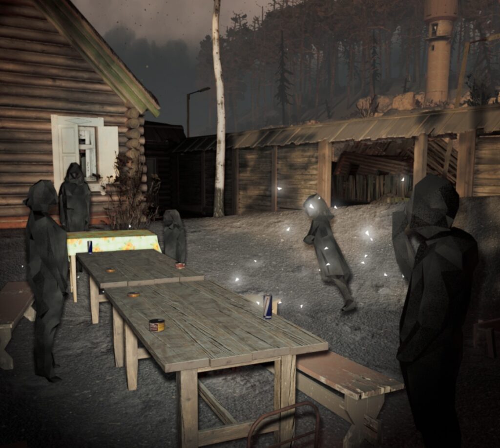 ポベダ工場で遭遇した「ミミックマークスマン」ですが、目的地の村にも複数体出現します。(画像はポベダ工場の封鎖線)