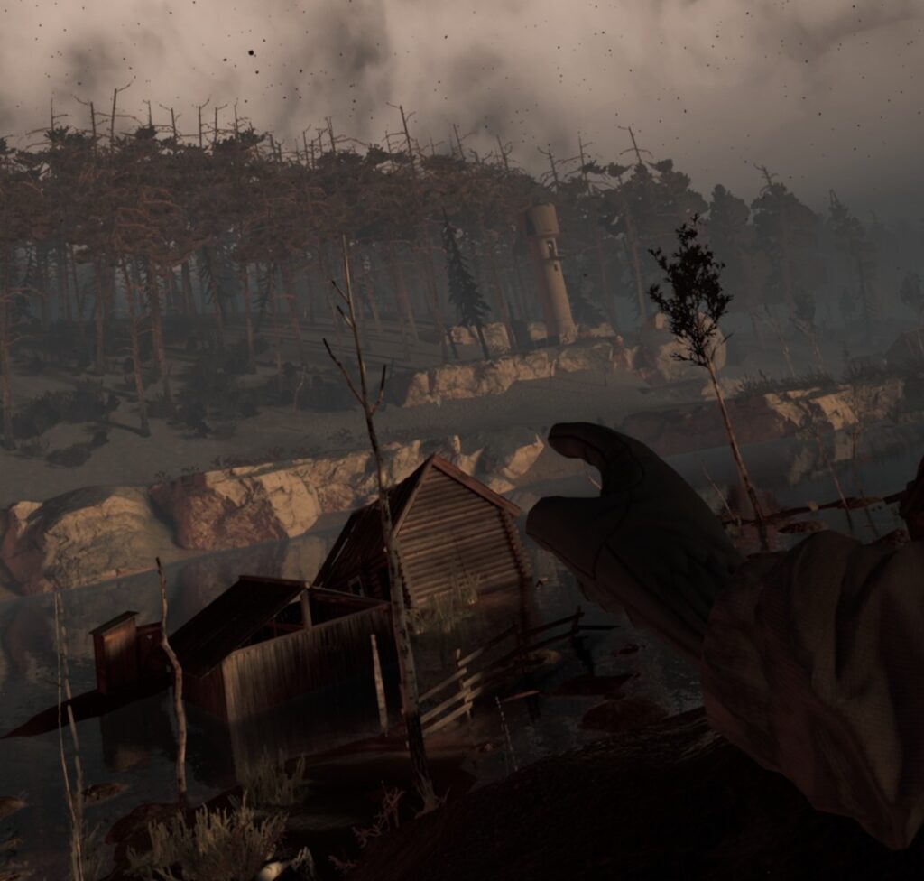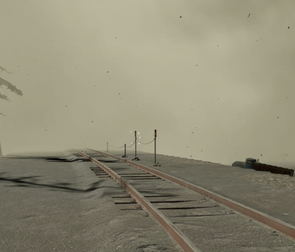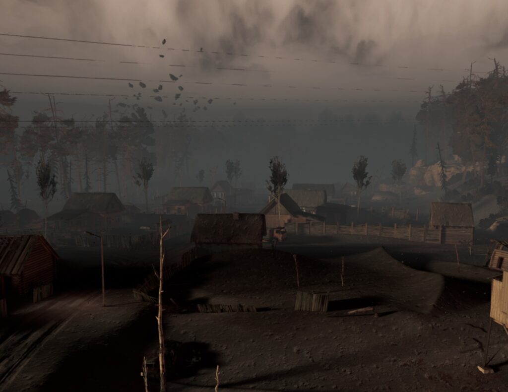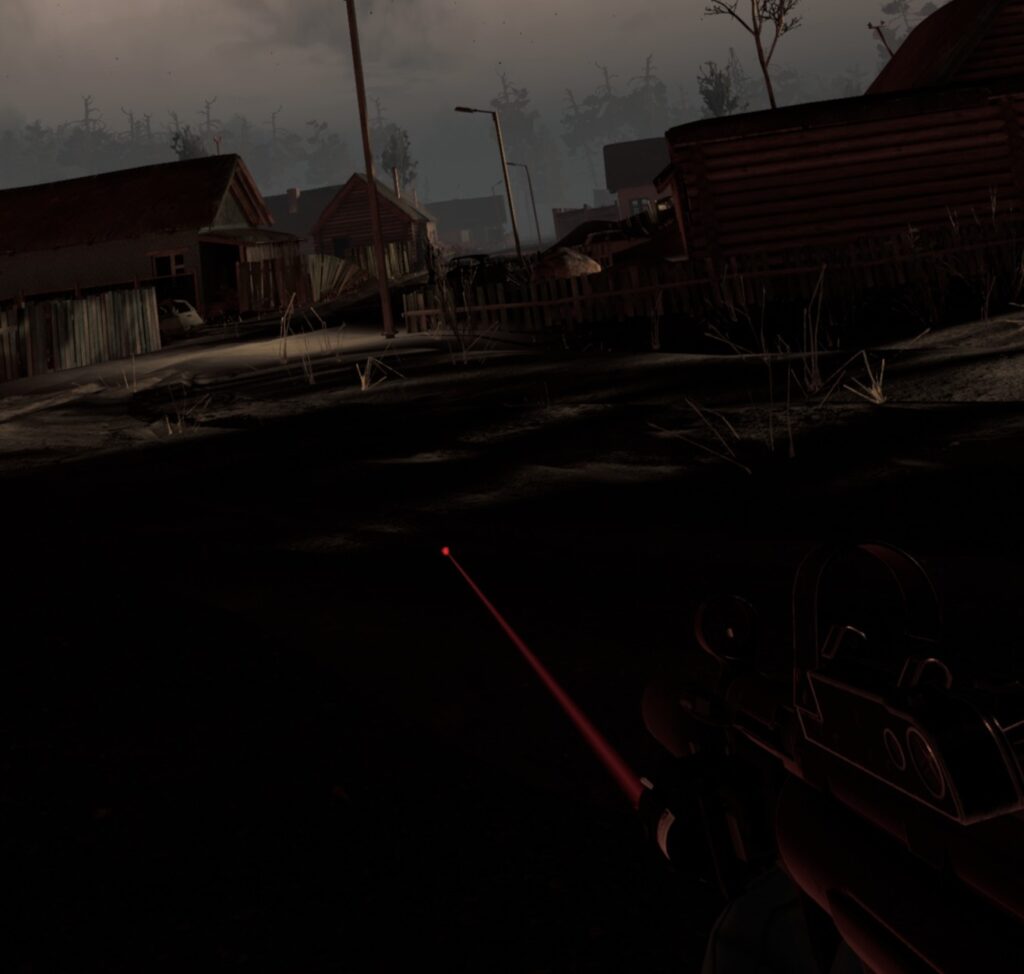 ポベダ工場で遭遇した「ミミックマークスマン」ですが、目的地の村にも複数体出現します。(画像はポベダ工場の封鎖線)