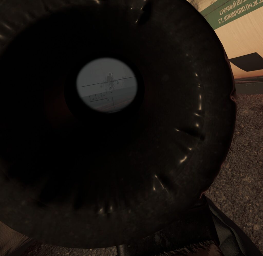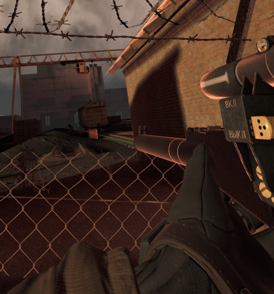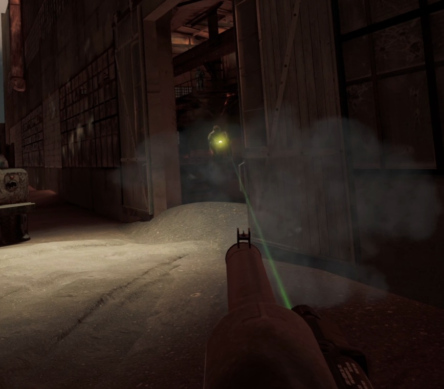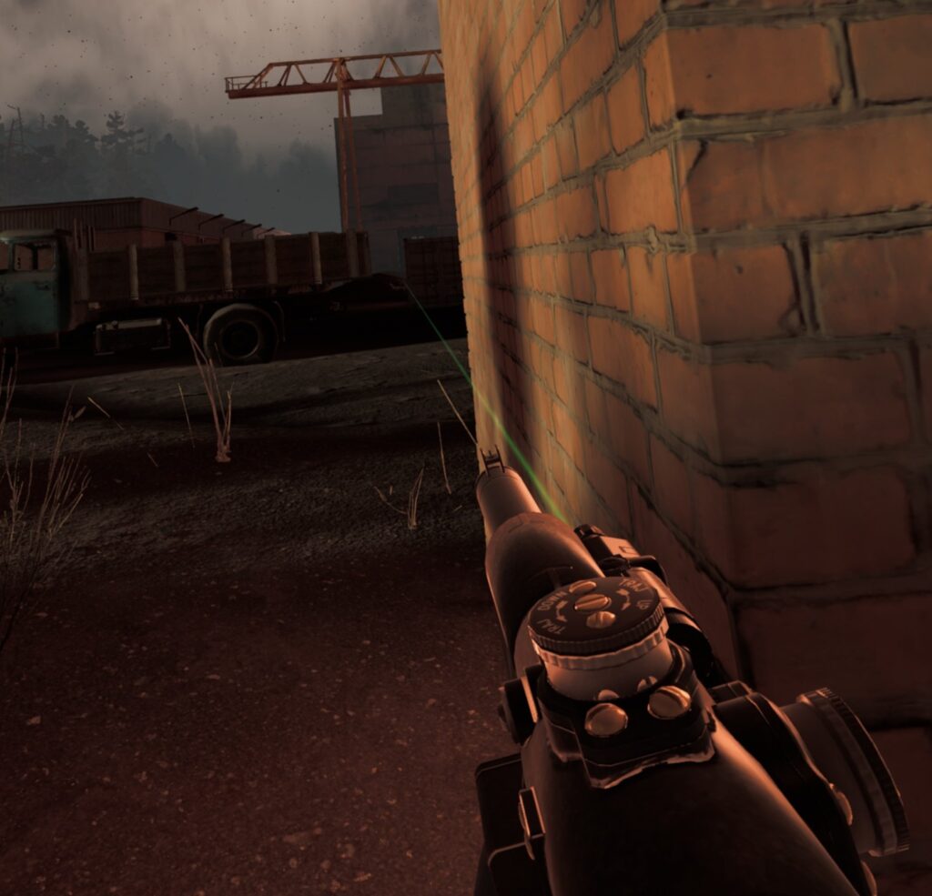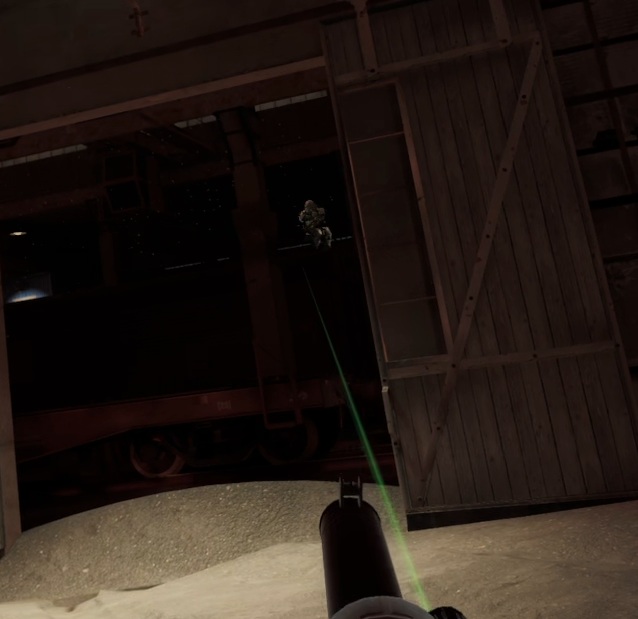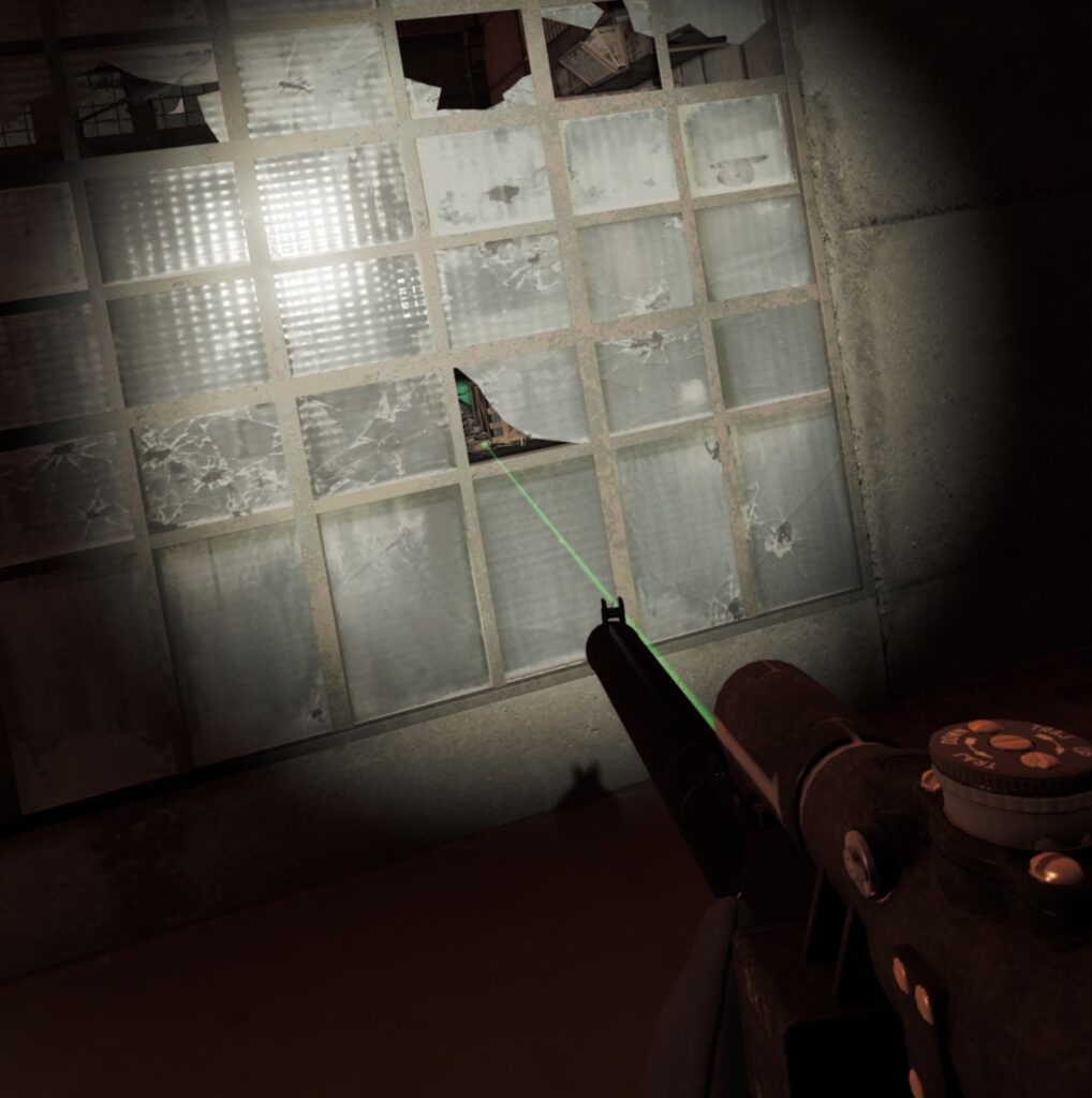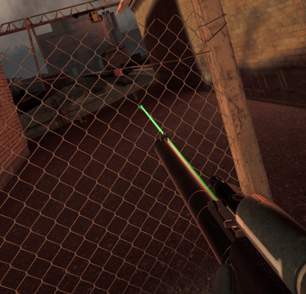 周囲に張られた金網のうち、画像の様にレーザーポインターが通らない部分は敵の視線や射線も遮ってくれます。