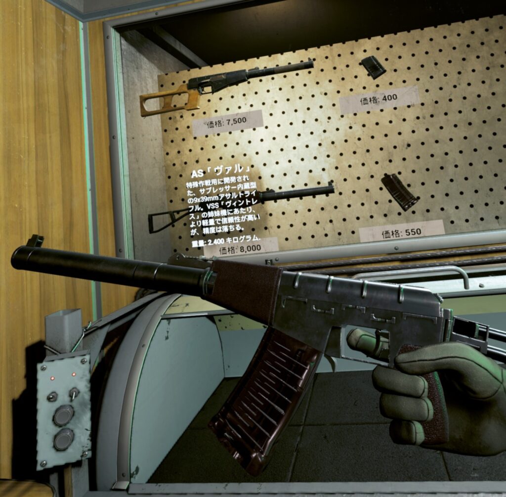 AS「ヴァル」を装備しており、サプレッサーによって消音された銃声やゴツゴツとした装備ですぐに判別可能です。