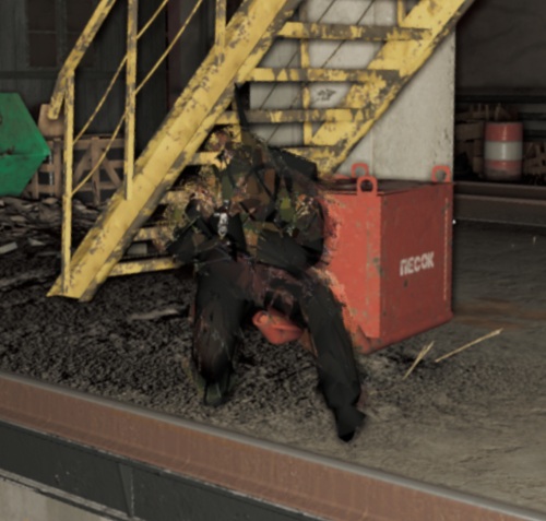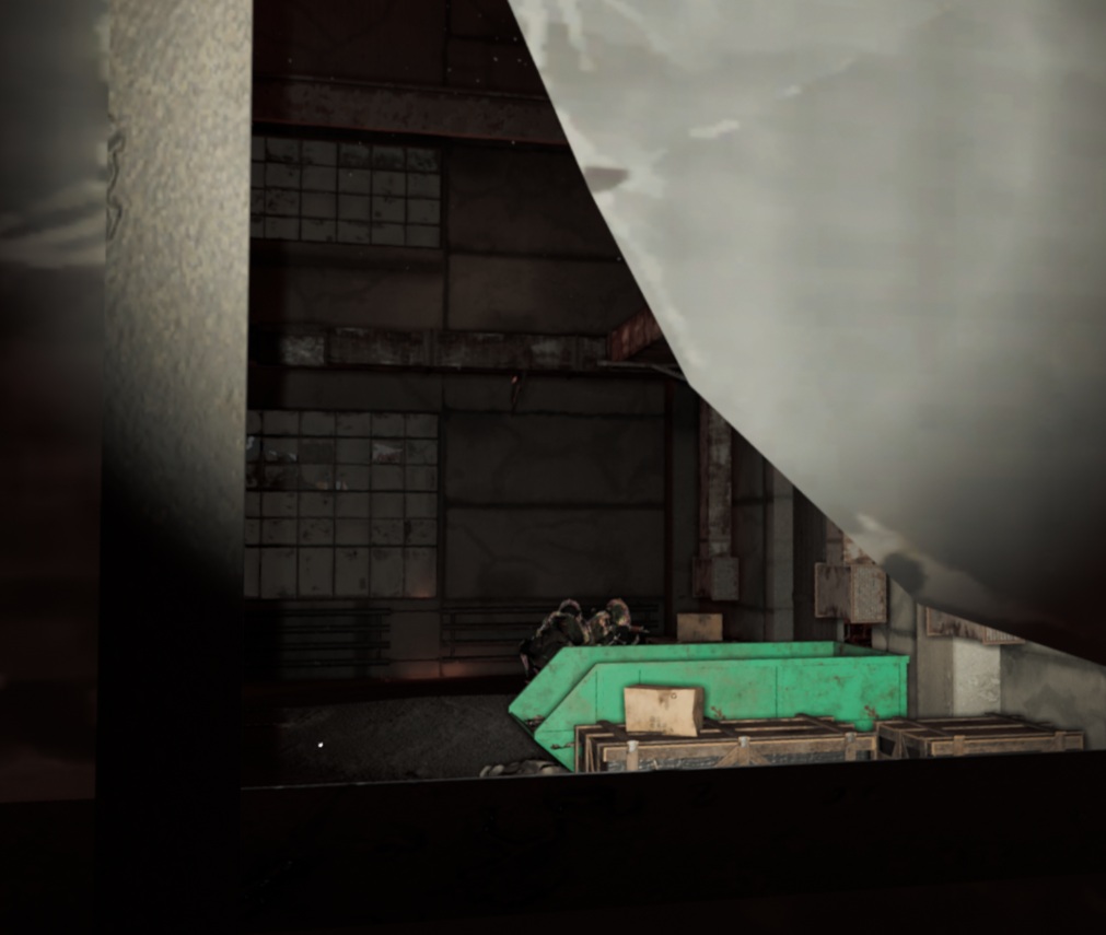 屋外の敵を排除した後は目の前に見える大きな車庫を攻略したくなりますが、正面から攻め込むのは推奨はしません。