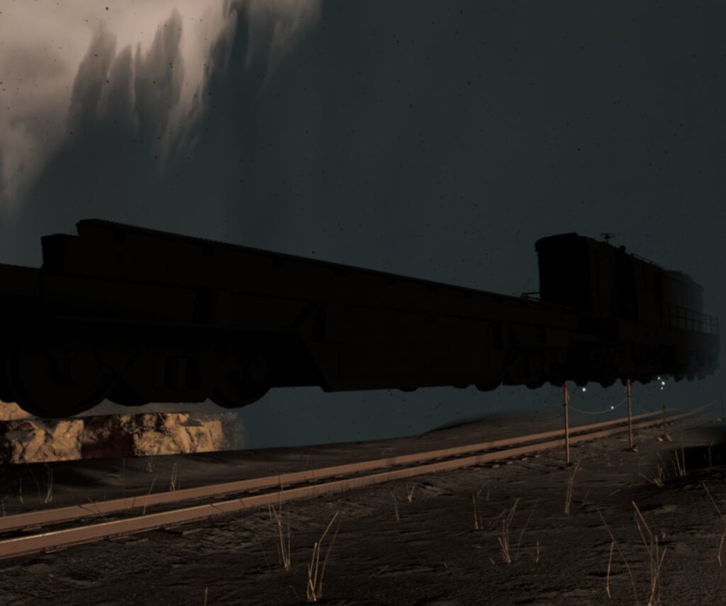 2つのギミックを作動させると、車庫の横側にミミックに似た質感の黒い列車が出現します。